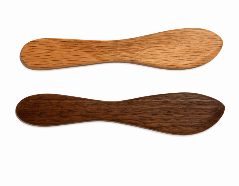 Alla våra produkter sågas, slipas och oljas för hand. Vi använder fint slippapper och reser fibrer mellan slipningar för en silkeslen känsla. Vid inoljning använder vi livsmedelsgodkänd paraffinolja och ibland bivax.